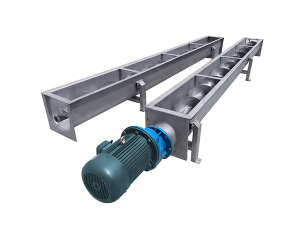 螺旋輸送機是一種利用電機帶動螺旋回轉,推移物料以實現輸送目的的機械。它能水平、傾斜或垂直輸送,具有結構簡單、橫截面積小、密封性好、操作方便、維修容易、便于封閉運輸等優點。螺旋輸送機在輸送形式上分為有軸螺旋輸送機和無軸螺旋輸送機兩種,在外型上分為U型螺旋輸送機和管式螺旋輸送機。有軸螺旋輸送機適用于無粘性的干粉物料和小顆粒物料.(例如:水泥、粉煤灰、石灰、糧等)而無軸螺旋輸送機適合輸送機由粘性的和易纏繞的物料。(例如:污泥、生物質、垃圾等)螺旋輸送機的工作原理是旋轉的螺旋葉片將物料推移而進行螺旋輸送機輸送,使物料不與螺旋輸送機葉片一起旋轉的力是物料自身重量和螺旋輸送機機殼對物料的摩擦阻力。螺旋輸送機旋轉軸上焊的螺旋葉片,葉片的面型根據輸送物料的不同有實體面型、帶式面型、葉片面型等型式。螺旋輸送機的螺旋軸在物料運動方向的終端有止推軸承以隨物料給螺旋的軸向反力,在機長較長時,應加中間吊掛軸承。